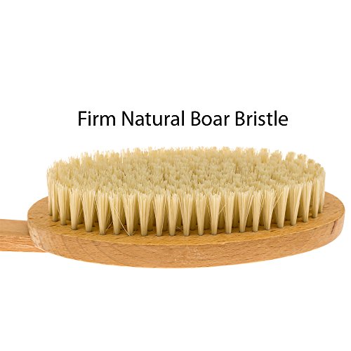 - Feature : ABSOLUTE BEST MATERIALS Natural boar bristle brush is gentle to the skin yet still able to provide an effective body scrub; Beech wood handle is ultra durable / EXFOLIATE FROM HEAD TO TOE WITH EASE Our exfoliating brush is extra long at 19.5 inches, so there's no spot on your body that is beyond its reach! / USE WET OR DRY Perfect for exfoliating in the tub or shower or for treating your skin to dry brushing to stimulate circulation and massage / EASY TO DRY Rope loop on the handle lets you hang the brush up to drip dry after use / PROFESSIONAL QUALITY SPA SOLUTION This bath brush will truly stand the test of time due to its durable craftsmanship and top-of-the-line materials