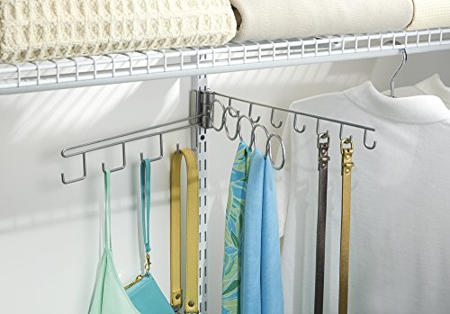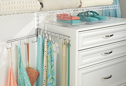 - Scarf and accessory closet organizer for wire shelving systems, including Rubbermaid, ClosetMaid, Elfa, and Schulte