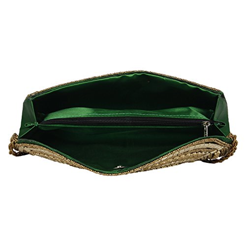Beaded Sizzling Rajasthani Style Hand-Cum-Wedding Clutch for Women & Girls - Green Color