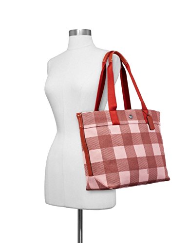 Coach F25919 Canvas Tote With Buffalo Plaid Print