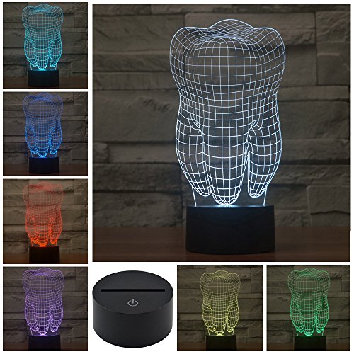 3D Illusion Lamp Gawell Night Light Tooth 7 Changing Colors Touch USB Table Nice Gift Toys Decorations