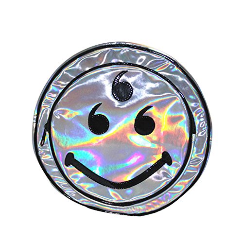 Mogor Women's Silver Hologram Holographic PU Laser Smiley Shoulder Bag