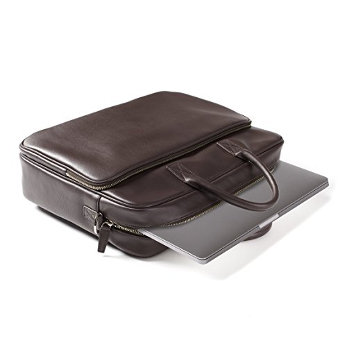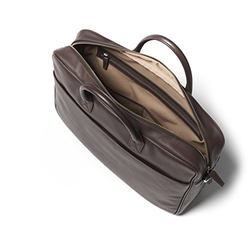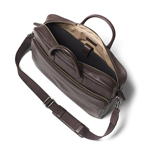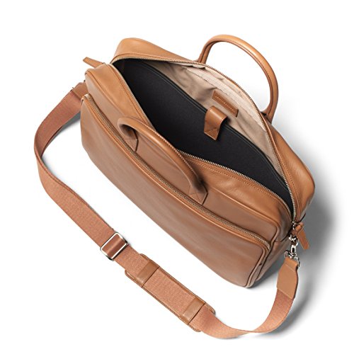 Studio : Leatherology Publisher : Leatherology Binding : Apparel Product Description The Henderson Laptop Brief Bag takes your favorite elements of the classic briefcase, and combines them with a modernized silhouette. An understated front compartment has two layers of pockets for smaller everyday items like pens, memos, or a phone charger. The main compartment has a neoprene sleeve and attached leather and Velcro flap to keep your laptop in place. A large zipped pocket is your spot for a phone or wallet, and two open pockets can store power cords or an external hard drive. Handy as a travel bag, the Henderson has a convertible back pocket that unzips at the base for secure storage on top of your luggage. 0