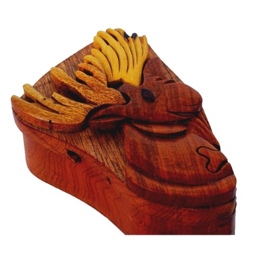 Handmade Wooden Intarsia TRICK SECRET Deer Head Puzzle Box (3203)