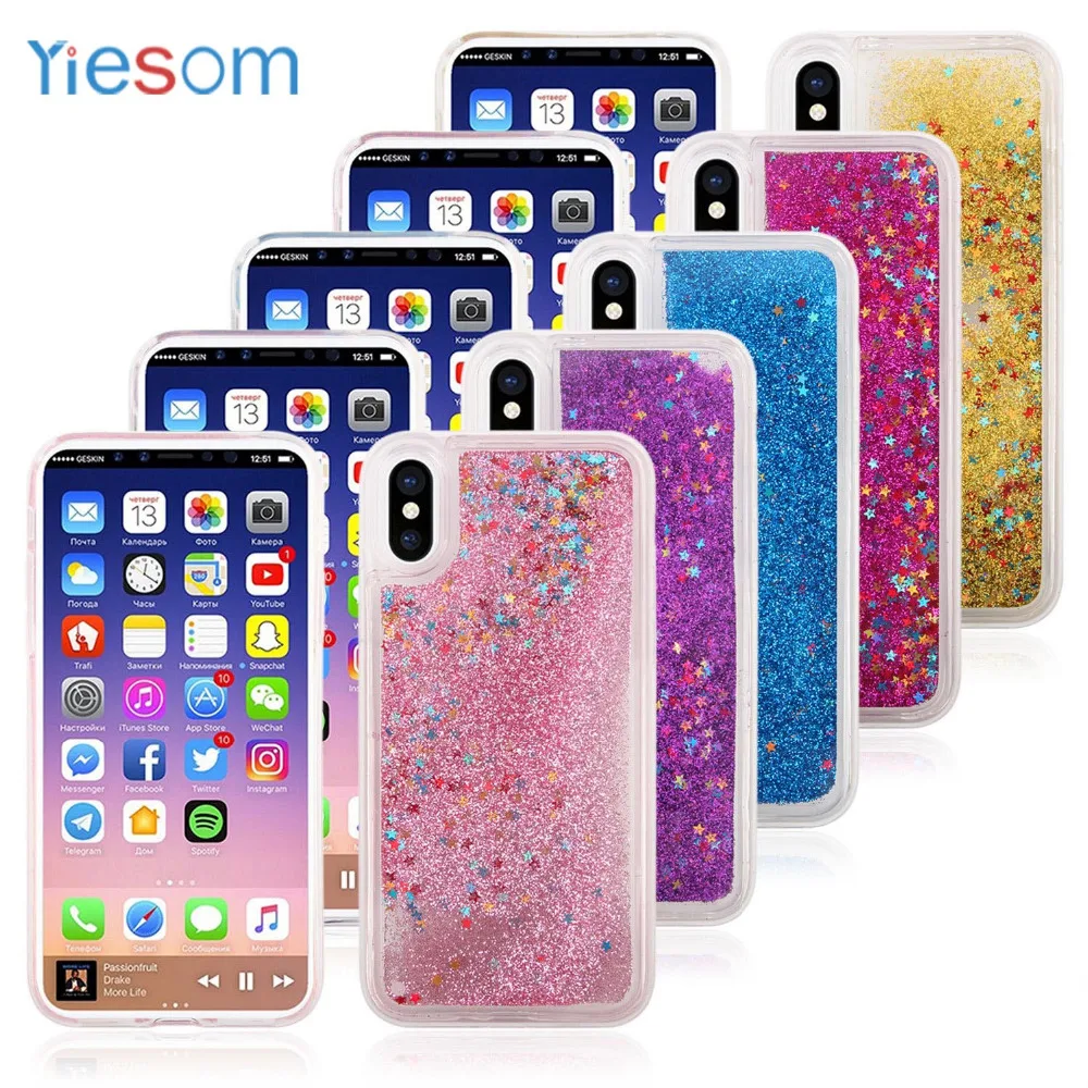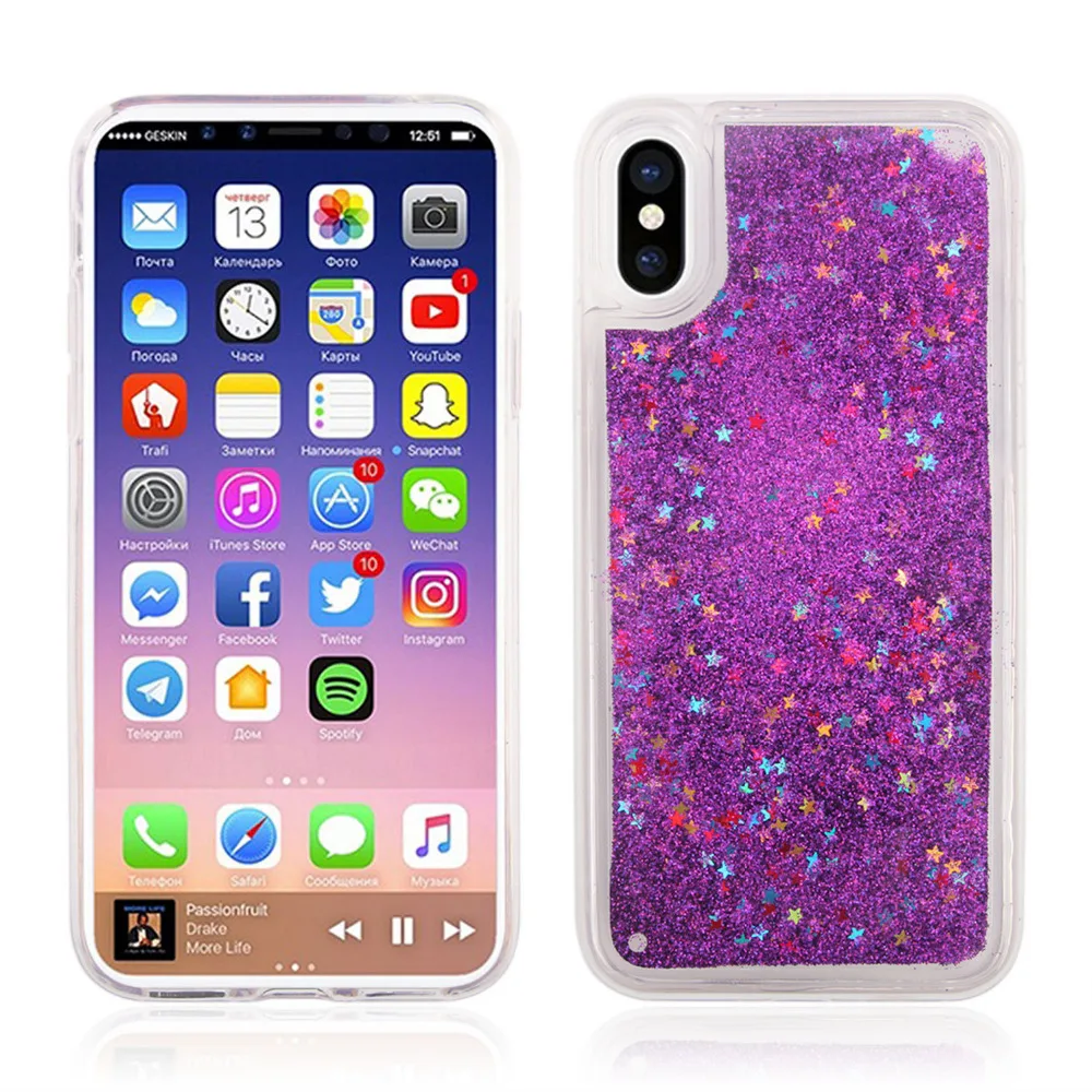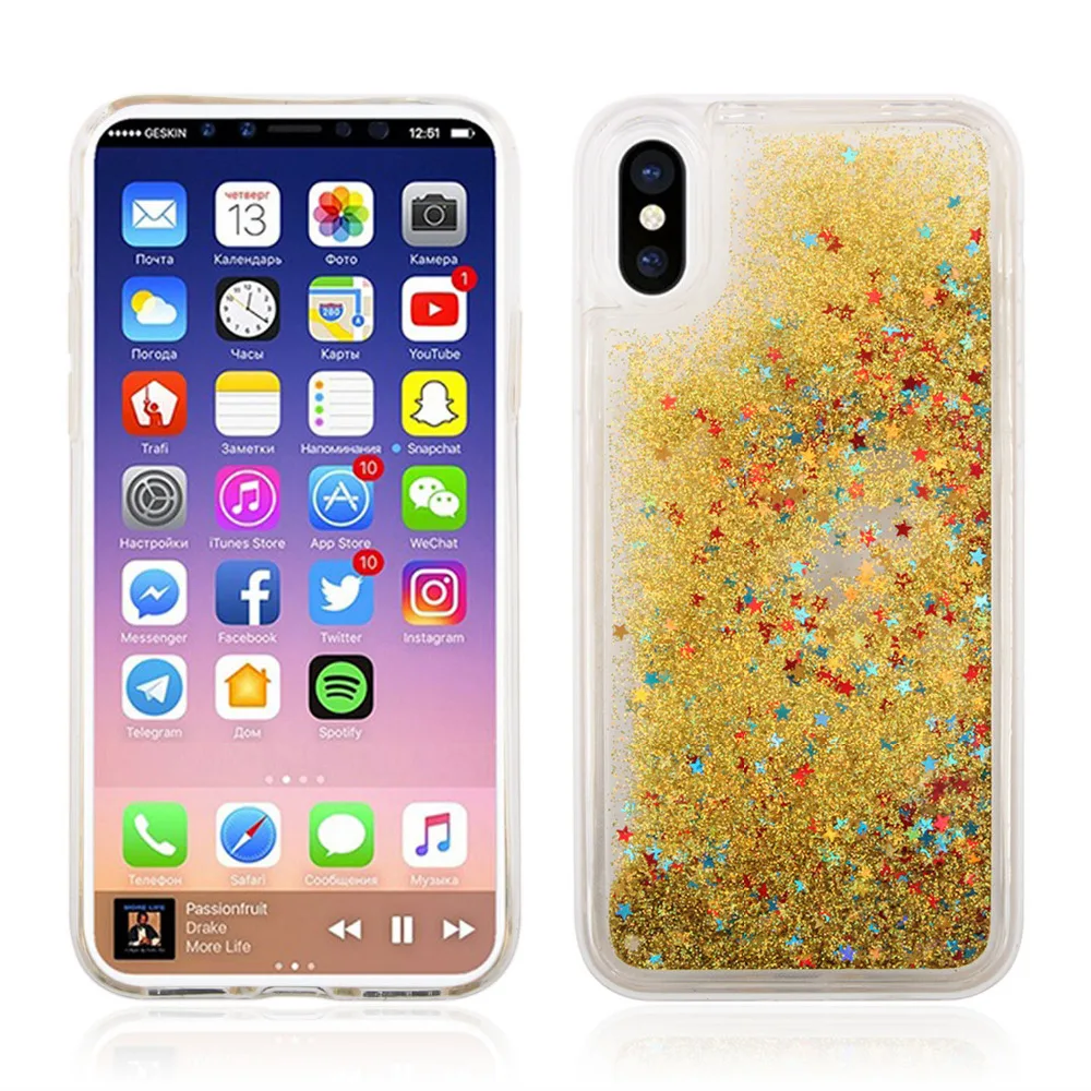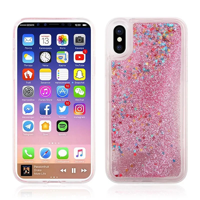 Features:Liquid Heart Star Drift Sand Glitt TPU Case