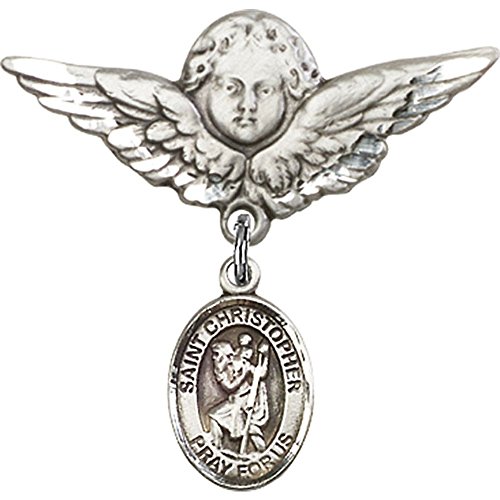 Sterling Silver Baby Badge with St. Christopher Charm and Angel w/Wings Badge Pin St. Christopher is the Patron Saint of Travelers/Motorists All Bliss products are 100% handmade in the United States at every stage of production, and come with a lifetime guarantee.