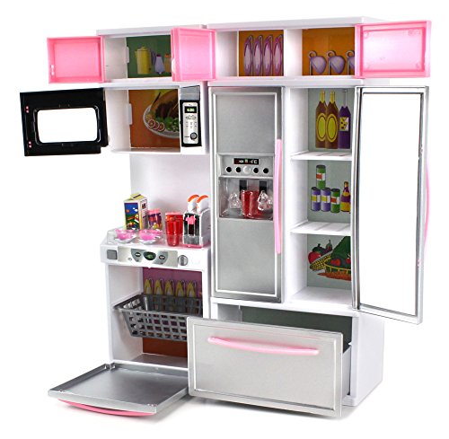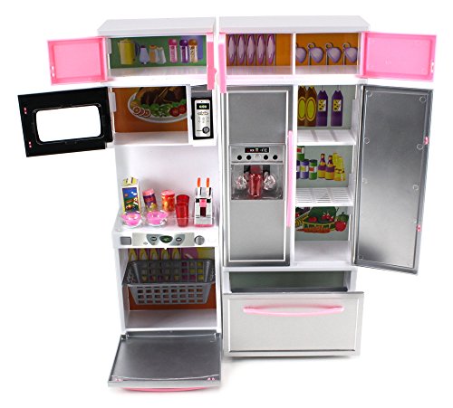 -. Binding : Toy -. Brand : Velocity Toys -. EAN : 0617390304481 -. Feature : 'Modern Kitchen 15' Battery Operated Toy Kitchen Playset / Perfect for Use with 11-12" Tall Dolls! (~29cm) / All Doors Throughout the Playset Can Be Opened, Microwave Lights Up / Comes with Various Accessories such as Mini Toy Cups, Plates and Much More! / Requires 3 LR44AG13 Batteries to Run (Included) Width: 10" Height 12.5" -. IsAdultProduct : 0 -. Label : Velocity Toys -. Manufacturer : Velocity Toys -. MPN : 26215P -. PackageQuantity : 1 -. PartNumber : 26215P -. ProductGroup : Toy -. ProductTypeName : TOYS_AND_GAMES -. Publisher : Velocity Toys -. Studio : Velocity Toys -. Title : 'Modern Kitchen 15' Battery Operated Toy Kitchen Playset, Perfect for Use with 11-12" Tall Dolls -. UPC : 617390304481