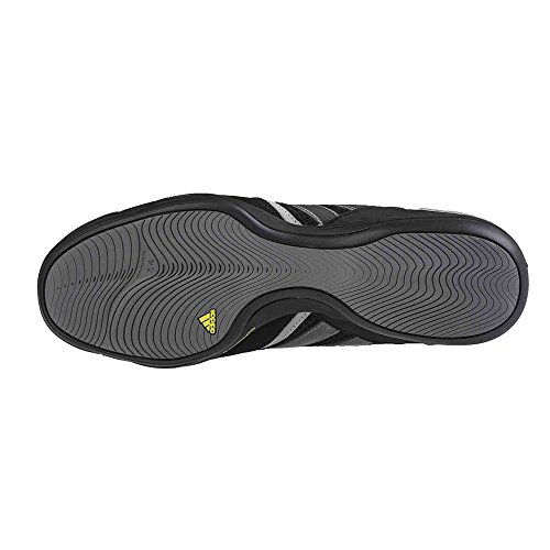 Binding : Apparel Product Description The adidas Boxfit 3 Boxing Boot is designed to improve your training with enhanced cushioning and support underfoot combined with an easy and quick lace system and mesh ventilation that will keep you cool in the ring.Features:*Rounded medial outsole contour for perfect grip on those wide sidesteps.*3D, open weave, warp-knit mesh for high breathability*3 Stripes of synthetic material for lightweight support*Low profile and non-marking gum rubber outsole for improved ground contact 0
