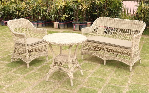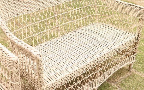 ●屋外対応の、手編みラタン調 2人掛けソファ。