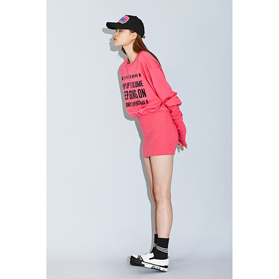 - 앞판의 레터링 프린트를 적용한 여성 원피스.