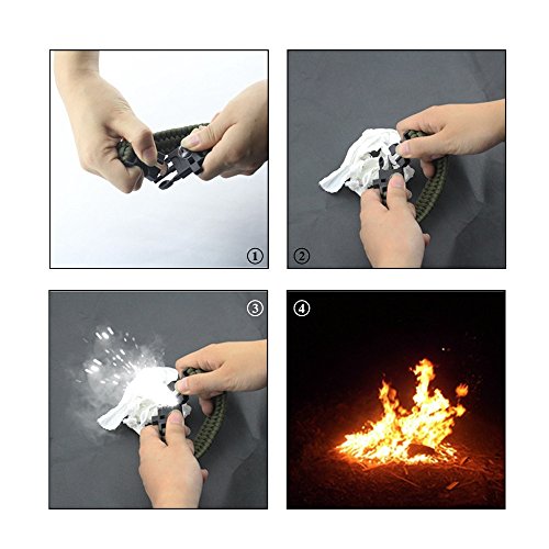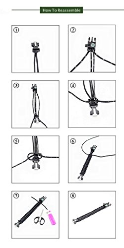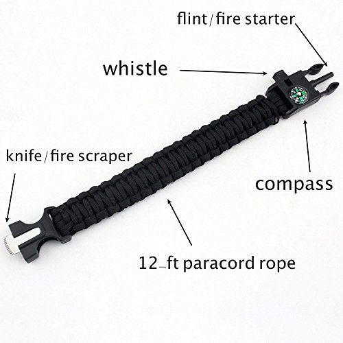 STRONG PARACORD ROPE: Military-grade, life-saving line made of tough 7-core rope totaling almost 12 feet unraveled that can withstand up to 550 pounds. Use for making traps, building tents, and many other situations.