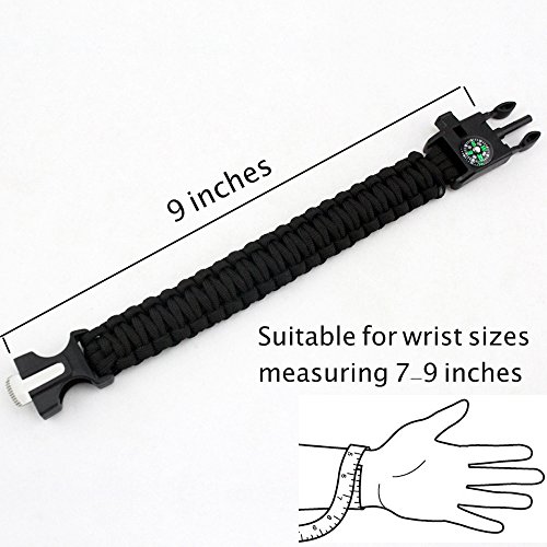MULTIFUNCTIONAL SURVIVAL BRACELET: Lightweight & comfortable design make the 7Leon Paracord Bracelet an indispensable survival accessory for any camping, fishing, hiking, or hunting trip. Fashionable design makes it perfect for daily wear as well. Fits all wrist sizes up to 9 inches.