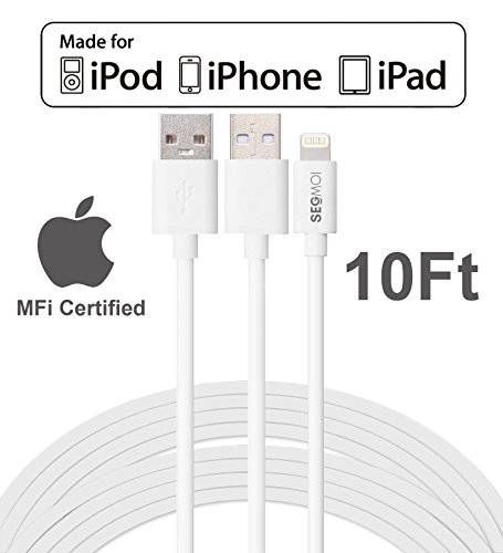 [Apple MFi Certified] SEGMOI 10Ft/3M Extra Long Lightning To USB Charger Cable Data Sync Charging Cord for Apple iPhone 6 6s Plus 5s 5c 5 iPad 2 3 4 Mini Air - White