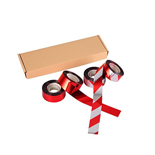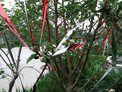 The Original Bird Scare Tape uses high quality reflective Silver and Red Cross ,the red and silver reflect each other, to scare way birds .In the wind, streamers can also emit metallic sounds, which helps keep birds away from this area;