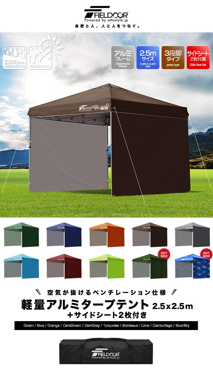FIELDOOR Easy to assemble! 2.5 x 2.5 m lightweight aluminum turntent G 03 (high water resistance processing & silver coating / UV cut coating)
