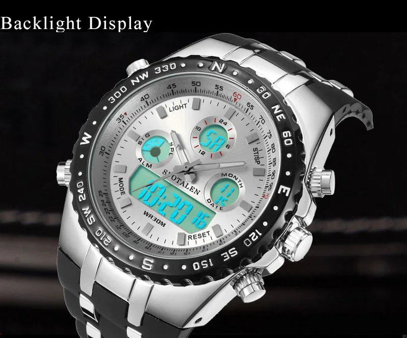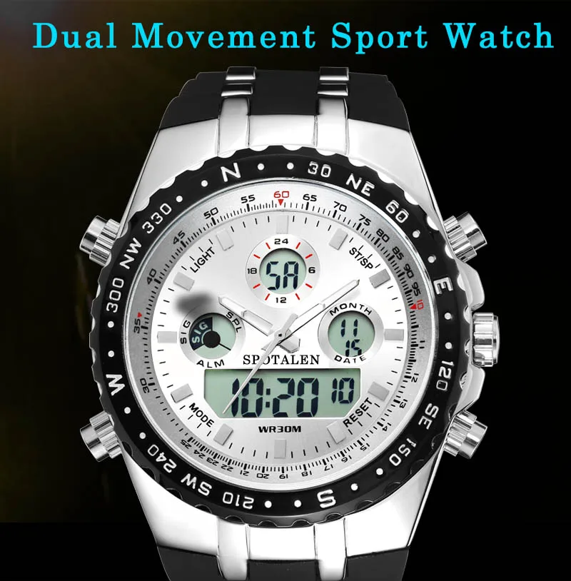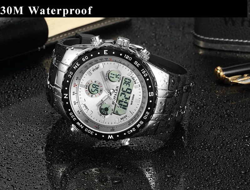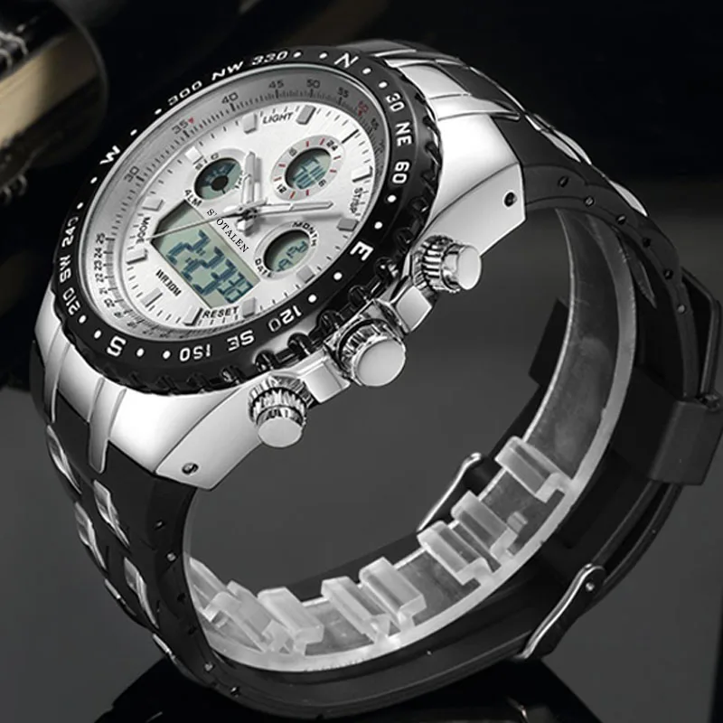 Shock Dual Display Wristwatches:causal mens watches