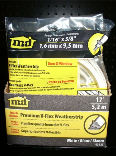 M-D Building Products 3525 V-Flex Weatherstrip,17-Foot Length, 3/8-Inch Wide, White