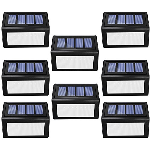 Solar 6 LED Step Lights - Sunklly Outdoor Waterproof Stair Lamp for Garden,Walkway,Patio ( White Light, Pack of 8 )