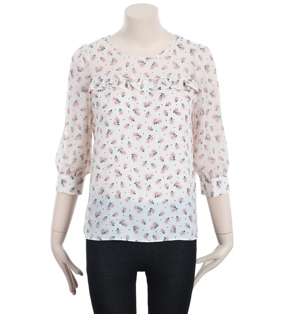 SATIN, 하늘하늘한 쉬폰 시스루로 여성스러운 느낌을주는 블라우스입니다