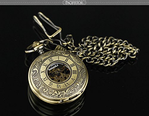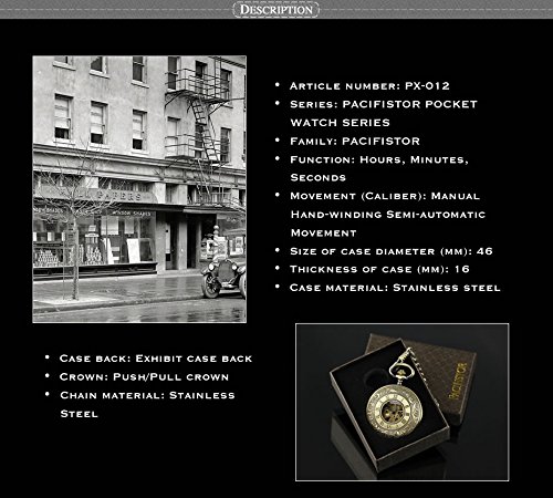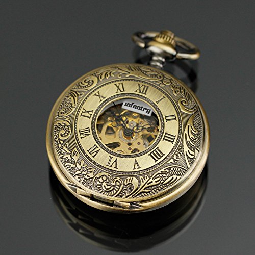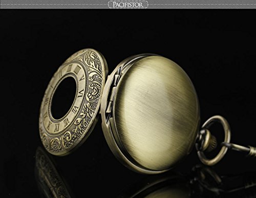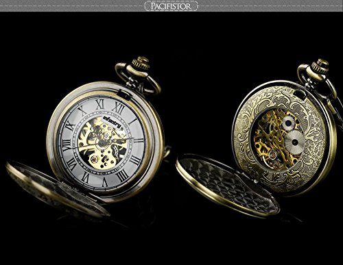 -. Title : PACIFISTOR Unisex Double Hunter Stainless Steel Semi Automatic Mechanical Skeleton Dial Pocket Watch - Brass