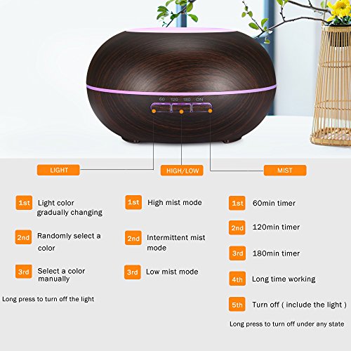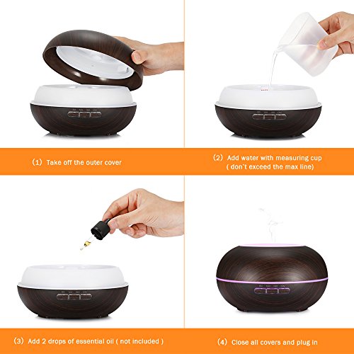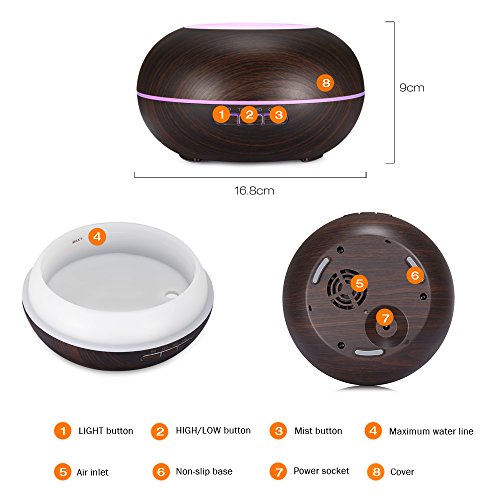 Joyhero 300ml Cool Mist Humidifier Ultrasonic Aroma Essential Oil with LED light Diffuser for Office Home Bedroom Living Room Study Yoga Spa - Wood Grain