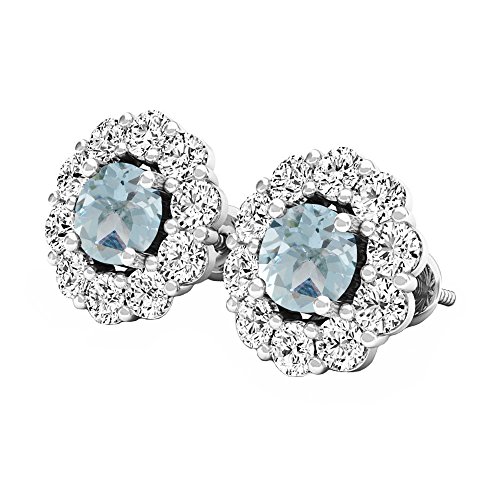 -. Title : 3.90 Carat (ctw) Sterling Silver Round Aquamarine & White Sapphire Ladies Halo Fashion Stud Earrings