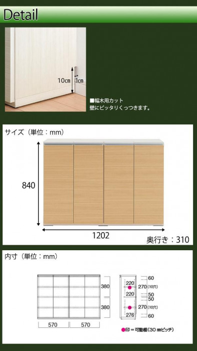| サイズ | W1202×D310×H840mm 個装サイズ:122×33×86cm |
