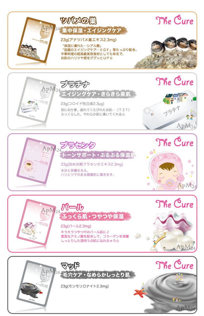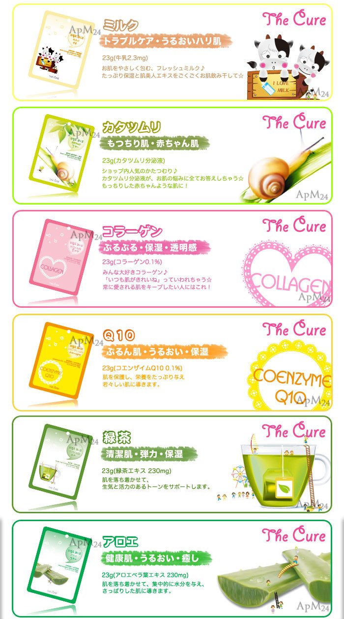 THE CURE 15 type 30-sheet set sheet mask pack snail collagen ・ Q10 ・ red ginseng vitamins Lu tea propolis aloe bird s nest Platinum Placenta and other