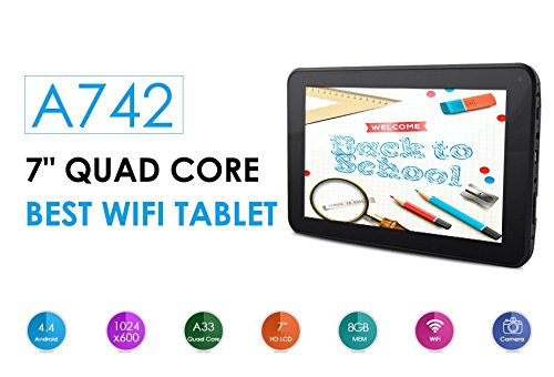 -. Feature : Beautiful 7" HD 1024 x 600 LCD and fast 1.3 GHz quad-core processor. Strong CPU and GPU enable this tablet to run gaming,movie and applications smoothly, perfect Kids Tablet for Games, Entertainment,Education & more / Enjoy Netflix, Facebook, Skype, 250000 eBook store, Gamestore (20 free games), OfficeSuite Trial version (Word and Excel), Music and Google Play Sotre over 1 million apps / It has 8GB storage and is expandable up to 32GB of memory via Micro SD Card. Up to 5 hours of reading, surfing the web, watching videos, and listening to music,Stay connected with fast web browsing, email, and calendar support / Android 4.4 OS comes with useful features like Front Facing Camera for Webcam/Skype, Speech and Sound Recording and more. Separated DC port (other than USB port) makes tablet durable and last longer / Premium grade Battery is WERCS Environment Protection certified. FCC and CE certified. US Local customer support by email or Toll Free #, we will take care of your issue immediately. Your satisfactions are guaranteed