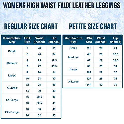 Binding : Apparel Product Description Women's Faux Leather High Waist Stretchy Synthetic Pants (Leggings) Hot Skinny Wet Look Leggings are all seasons hot fashion trend. These pants are full length with a trending high waist. It is super comfy and stylish. Item Type: Leather Leggings Gender: Women Pattern Type: Solid design: Casual Waist Type: High Material: Polyester Spandex (Stretchy Faux Leather ) Color: Black, Shiny Black, Matt Gold, White, Olive Green, Dark-Blue Size: Small, Medium, Large, XL, 2XL, 3XL Size Details(cm) 1 inch = 2.54 cm (Women's U.S. Size Chart) Sizes-----------------USA--------------Waist(inches)-----------------Hip(inches) Small ------------------0 - 2 ------------ 23 - 25 -------------------- 31 - 34 Medium------------------4 - 6 ------------ 25 - 27 -------------------- 32.5 - 35.5 Large ------------------8 - 10 ------------ 26 - 28 -------------------- 34 - 37 X-Large ----------------12- 14 ------------ 28 - 30 -------------------- 36 - 39 XX-L -------------------16- 18 ------------ 28.5 -30.5 ----------------- 38 - 41 3XL --------------------18- 20 ------------ 30- 32 -------------------- 40 - 43 Package Includes: 1 x Faux Leather Leggings Please note : These are Faux leather material and not real leather nor real snake skin Recommend Hand wash cold | Do not bleach | Hang Dry (To Avoid Pilling)
