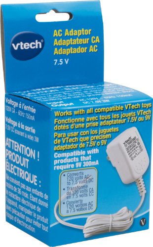 -. Binding : Toy -. Brand : VTech -. Feature : Works with InnoTab Learning Tablets and other VTech learning toys, including the V.Reader and MobiGo Systems / Converts 120 volt AC to 7.5 volt DC / Compatible with products that require 9V 300mA -. Label : V Tech -. Manufacturer : V Tech -. Model : 80-0877000-PARENT -. PackageQuantity : 1 -. ProductGroup : Toy -. ProductTypeName : TOYS_AND_GAMES -. Publisher : V Tech -. Studio : V Tech -. Title : VTech AC Adaptor