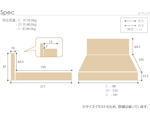 外寸:幅98x奥行211x高さ87cm/重量:約35.5kg