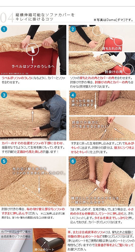商品について:スペイン製の生地を使用したストレッチ素材のソファカバー。中綿入りでふわふわな感触をお楽しみ下さい。