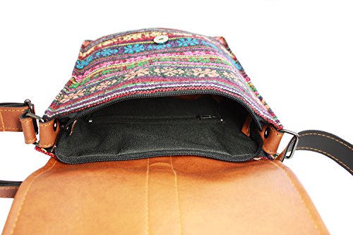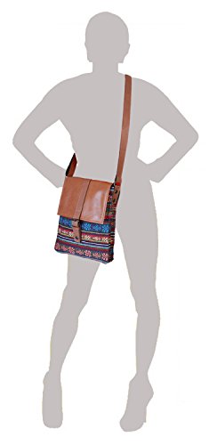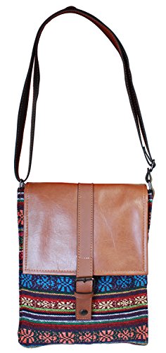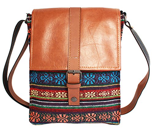 -. Feature : 1 zipper inner pocket, cell phone pocket, adjustable strap and buckle on cover, zipper and magnet snap closure. / Material : PVC Leatherette, floral woven fabric and polyester lining. / Items Dimensions : HxWxD : 11x9x1.5 inches, Shoulder Drop 13-24 inches. Weight 10 oz. / Big shoulder cross body purse has roomy enough for Ipad, small notebook,mobile and wallet. / Perfect gift for men, women and teens in all occasions. Suitable for everyday wear, casual wear, holiday.