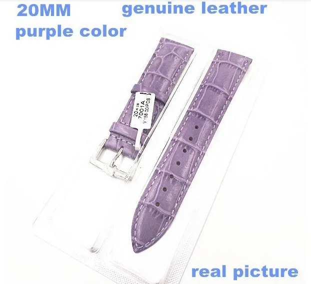 1 개 고품질 20mm 정품 소 가죽 시계 밴드 시계 끈 보라색 컬러