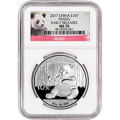 2017 CN China Silver Panda (30 g) Early Releases Red Panda Label 10 Yuan MS70 NGC