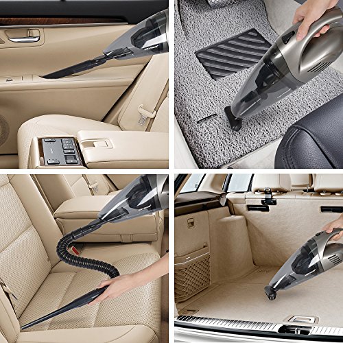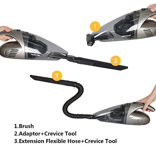 VERSATILITY: supports DRY and WET application,can clean up all the garbage from the car, and liquid absorption is as easy as pie to it with with 3 extra attachments. (1 x Extension Hose, 1 x Brush Attachment, 1 x Crevice Tool)