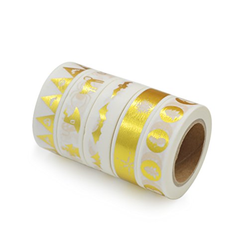 Lychee Craft Metallic Gold Xmas Christmas Japanese Washi Paper Tape Christmas Tree Cat Bat Halloween of 5 Cute Masking Tapes Diy Ideas