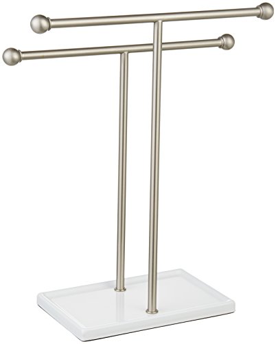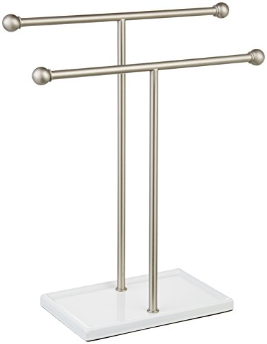 AmazonBasics Double-T Hand Towel and Accessories Stand - Nickel/White