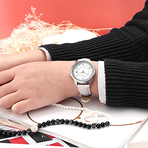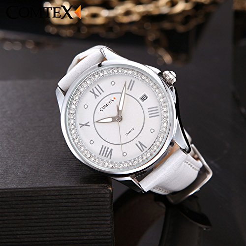 상품명: Comtex 시계화이트가죽 밴드 날짜 아날로그 손목시계 쿼츠 여성 손목시계 레이디스