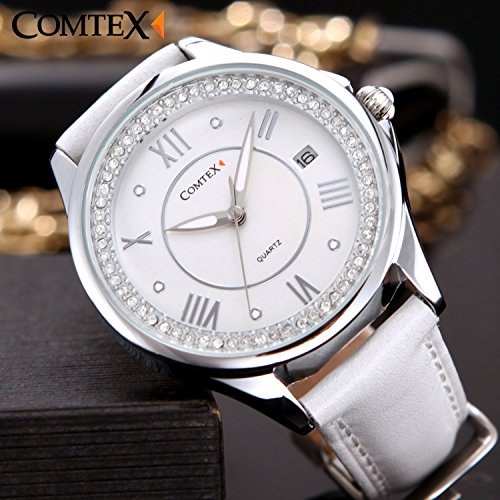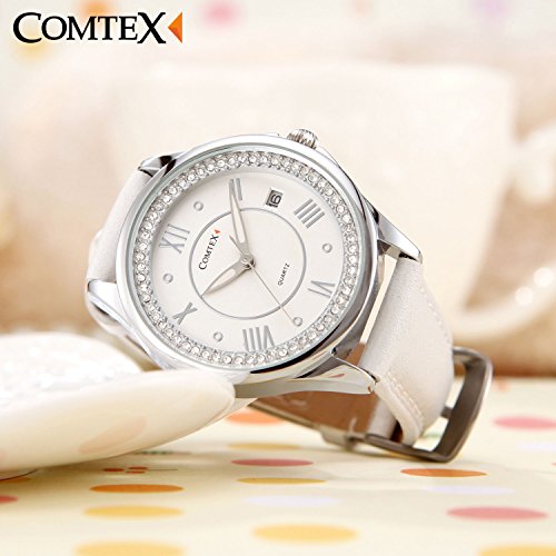 Comtex 손목시계 화이트 아날로그 손목시계 캘린더 표시 쿼츠 시계 레이디스