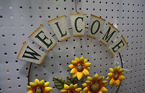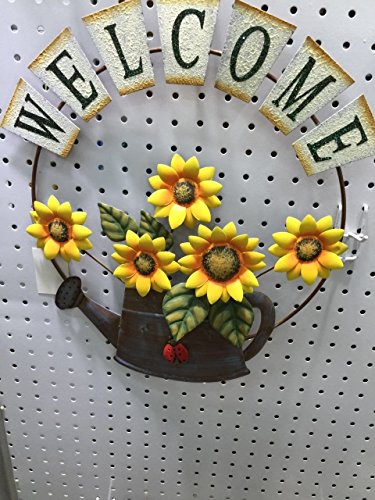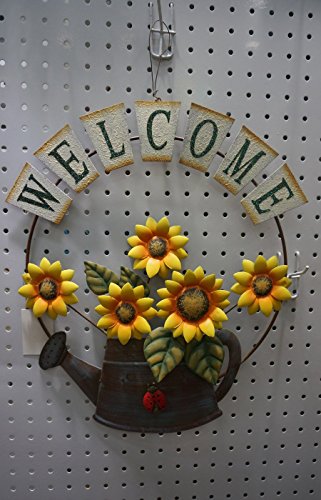 Garden themed metal welcome sign, shabby chic, with sunflower and growing form a watering can design