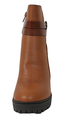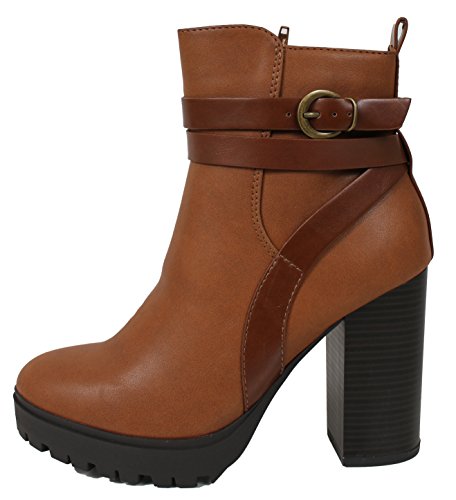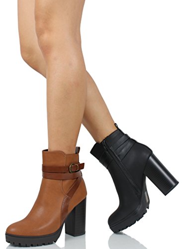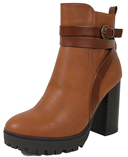 City Classified Women's Strappy Lug Platform Stacked Block Heel Ankle Bootie