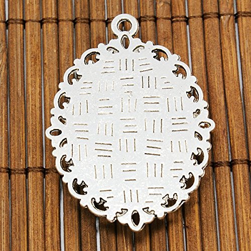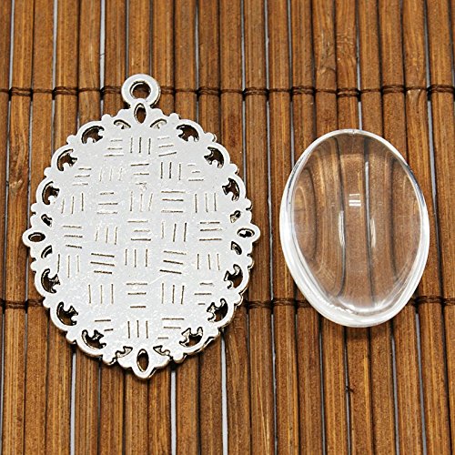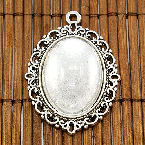PEPPERLONELY Brand 10 Sets Antiqued Silver Cabochon Frame Setting Tray Pendant with Clear Oval Glass Dome Tile Cabochon 18x25mm