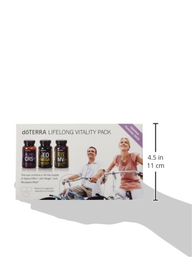 -. Binding : Health and Beauty -. Brand : doTERRA -. Color : white -. EAN : 0998342100017 -. Feature : Includes Alpha CRS+, MicroPlex MVp and xEOMega / doTERRA's lifelong vitality supplements are formulated with potent levels of essential nutrients and powerful metabolic factors for optimal health, energy, and longevity. / Coupled with doTERRA's CPTG Certified Pure Therapeutic Grade essential oils and a lifelong commitment to doTERRA's wellness lifestyle, they naturally support a lifetime of looking, feeling and living younger, longer. -. IsAdultProduct : 0 -. Label : doTERRA -. LegalDisclaimer : *These statements have not been evaluated by the Food and Drug Administration. This product is not intended to diagnose, treat, cure, or prevent any disease. -. Manufacturer : doTERRA -. MPN : 34210001 -. PackageQuantity : 1 -. PartNumber : 34210001 -. ProductGroup : Health and Beauty -. ProductTypeName : HEALTH_PERSONAL_CARE -. Publisher : doTERRA -. Studio : doTERRA -. Title : doTERRA Lifelong Vitality Pack -. UPC : 615872170135