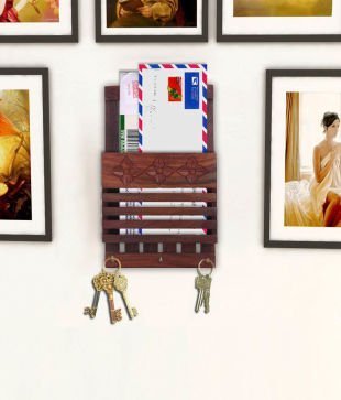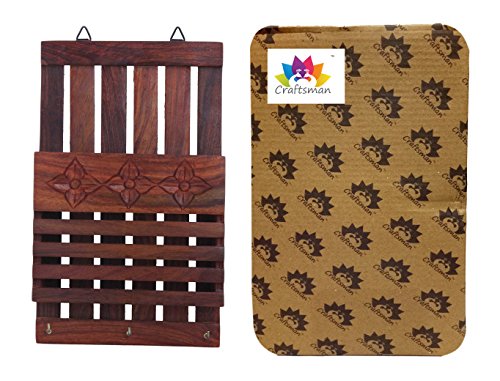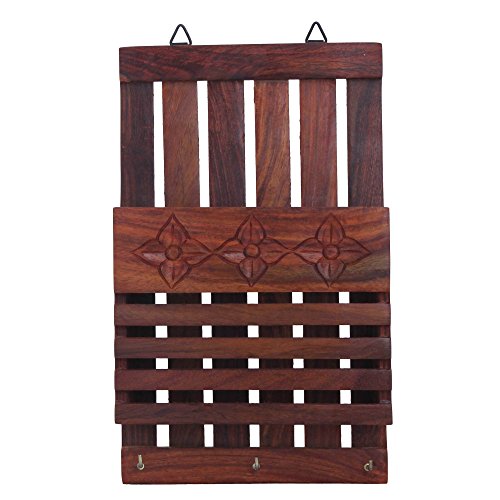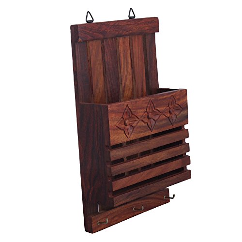 Crafts'man Wooden Wall Hanging Letter Organiser/rack and Letter and Paper Holder with Key Hooks