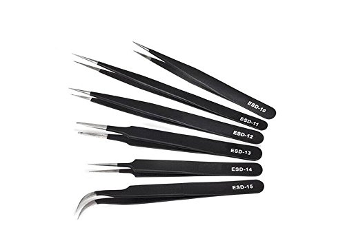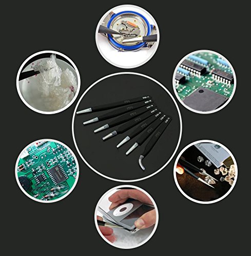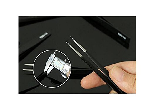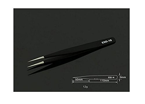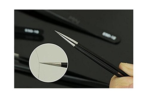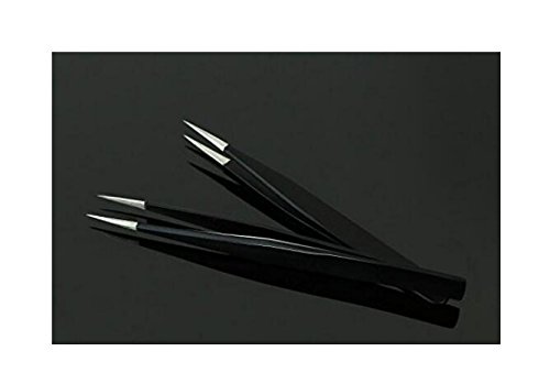 Professional Stainless Steel Black Coated Ingrown Hair Splinter Removal Tip Tweezers Anti-Static Precision Tweezers for Laboratory Work Hobbies and Jewelry-making Electronics (ESD-10)