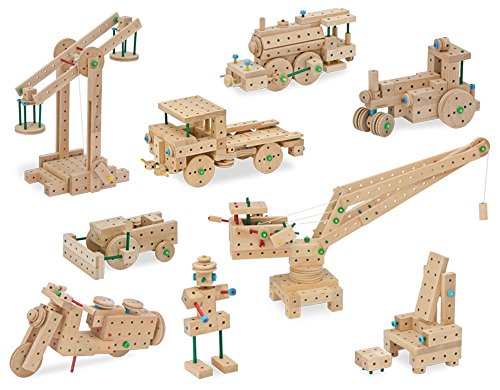 -. Feature : This set can build advanced models with moving parts like windmills, trains, carousels, helicopters, swings and pulleys. Younger children can focus on the simpler models and grow into the more complex ones. / 318 Piece set includes an assortment of tools and assembly instructions for 72 different models. The instructions are divided into 5 different levels making this a great toy for beginner to expert architects. / Precision-drilled construction blocks, plus connecting rods, axles and wheel discs that fit perfectly, open up a whole world of sophisticated construction to create logical links between theory and practice. / Matador is available for two age groups; Matador Ki (Ages 3 to 5 ) and Matator Classic (Ages 5 Years +). This set is compatible with other models from the Classic collection. / Made of untreated wood from copper beech trees, grown in Austria in environmentally sustainable forests. All parts comply with the very stringent European EN 71 1-11 standard, which specifies safety requirements for toys.