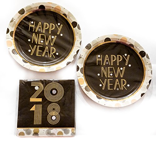 Happy New Year 2018 Paper Plates & Napkins - Party Supplies for 20 Guests (Retro Art Deco Design)