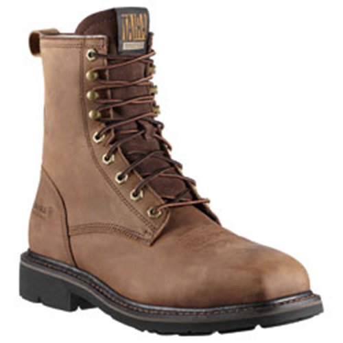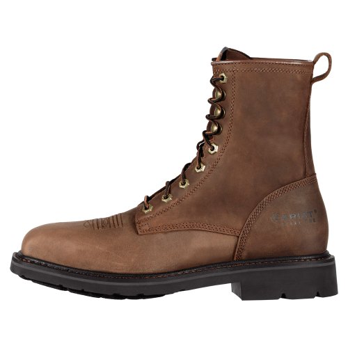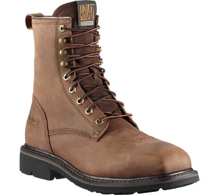 Studio : Ariat Publisher : Ariat Binding : Apparel Product Description Ariat Boots are made for men who want to be comfortable while they work. These Ariat Cascade work boots feature a full grain leather foot under a matching, lace-up 8" leather shaft. 90 degree heel. Single stitched welt. Steel square toe profile. Imported. 0